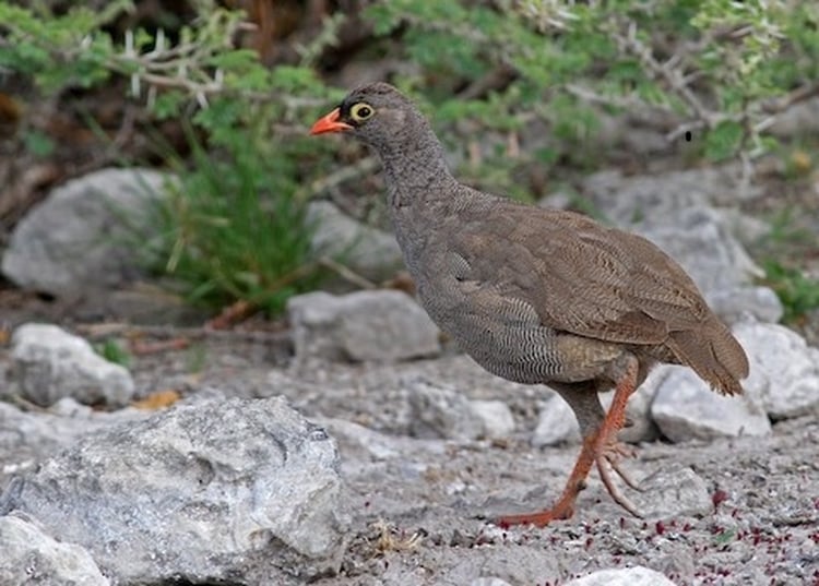 Meet one of the most vocal birds in southern Africa, the Red-billed francolin. A medium-sized bird with a permanent frown and sceptic expression on its face, the francolin, which belongs to the pheasant family and is also called spurfowl. It has strong spurs on its legs, which are orange-yellow like their beak.