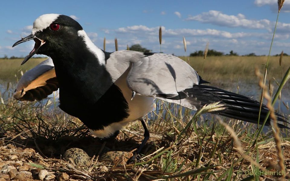 The Blacksmith Lapwing owes its name to the call it makes which sounds similar to a blacksmith shaping a glowing piece of metal on his anvil with a hammer.