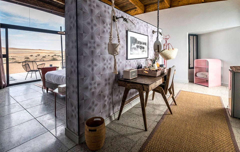 The Desert Grace opened its doors in 2018 and created new job opportunities. The positions were filled through training and promotion of internal staff from other Gondwana lodges, as well as recruiting and training new staff, who also received an introduction to conservation and teamwork. The lodge team periodically participates in cleanups along the busy C19 to Sesriem in an effort to minimise litter in the area.