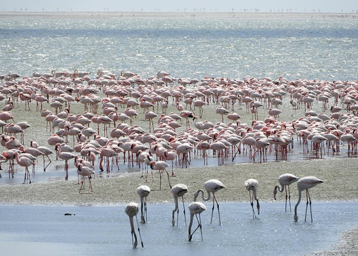 Another easy self-drive excursion from Swakopmund leads towards Walvis Bay and the flamingos. The 30km scenic drive between the desert and sea is a treat.