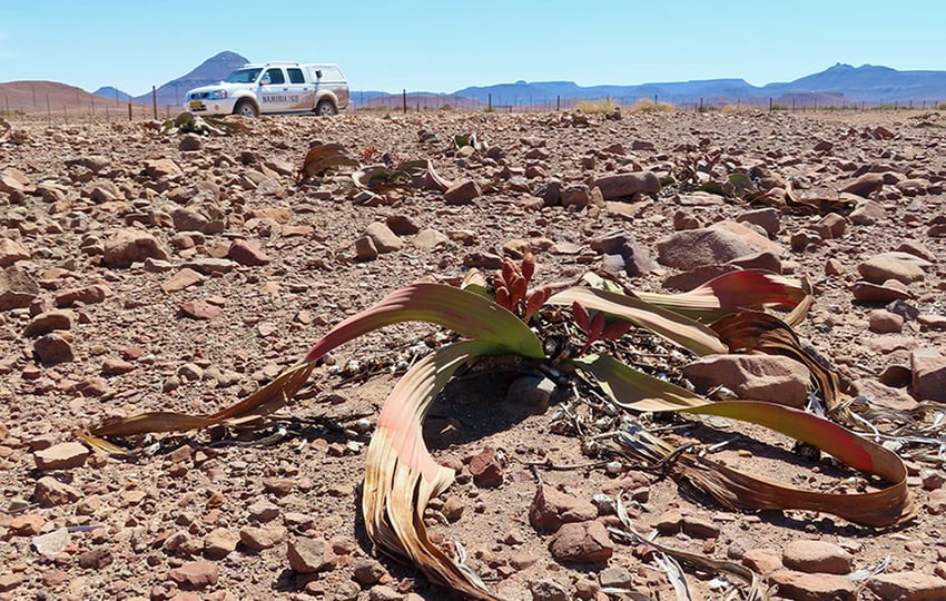 When I turn westwards towards Torra Bay and the coast, I revel in the exquisite Damaraland landscape. There are vistas of spectacular red rocky beauty with table-top mountains and small, sturdy shepherd trees. I discover plains of healthy welwitschia, those intriguing two-leaved plants that befuddled scientists for so many years, covering the rocky earth floor. This is arid-land loveliness at its finest.