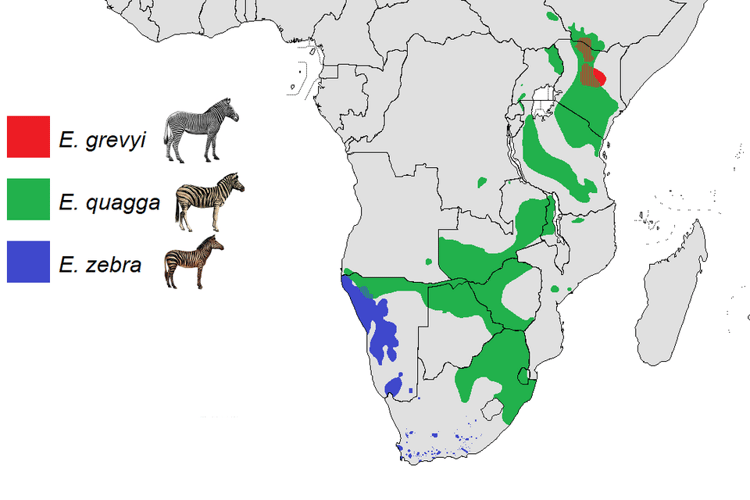 These three species are threatened to varying degrees. The International Union for Conservation of Nature (IUCN) lists Grévy's zebra as endangered (recent estimate: 2,250 specimen, according to Wikipedia), the plains zebra as near-threatened (recent estimate: 500,000 specimen, according to Wikipedia) and the mountain zebra as vulnerable (estimate: 35,000 specimen, according to IUCN) and Hartmann's Mountain Zebra 33,000 Cape Mountain Zebra about 2,000 specimen.