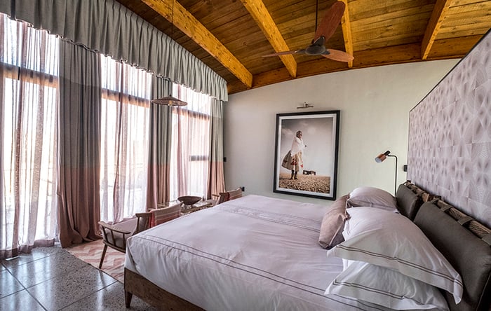 It is exactly this natural setting that inspired The Desert Grace’s interior design – lavishly yet simplistically decked out in salmon pink. This is in stark contrast with the harsh surrounds.