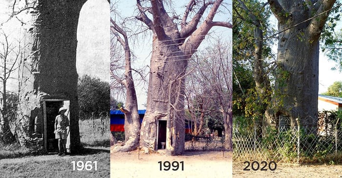 The Katima baobab, however, still stands, stronger and larger than before, joined by a smaller baobab at its side. It has witnessed the changing of the times, wars and independence and the whims of many a man. Living up to two thousand years, there are many stories that a baobab witnesses in its lifetime, a toilet in a hollow tree being just one of them.