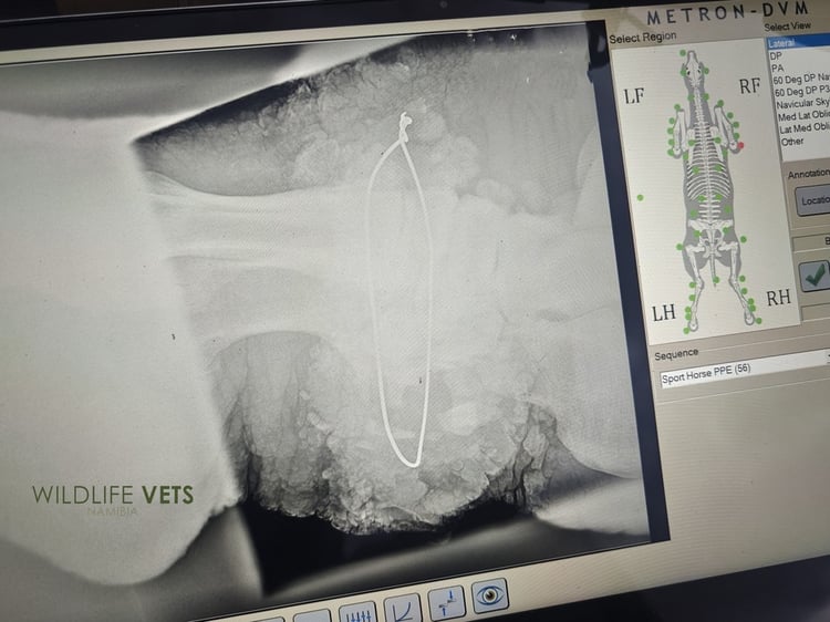 The vets were called and came all the way from Windhoek and even brought a portable X-ray machine along.