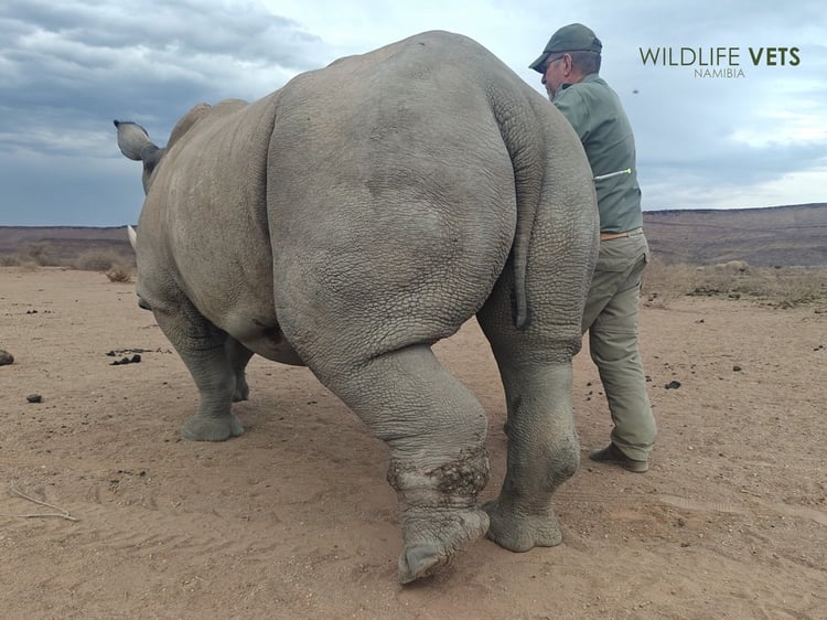 An older rhino cow on a private farm in Namibia, was recently treated successfully by a team of veterinarians specialising in wild animals.