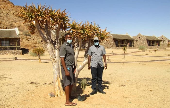 The near endemic garden at Canyon Village has a number of Quiver Trees (Aloidendron dichotomum), which are a protected species and form an icon of southern Namibia.