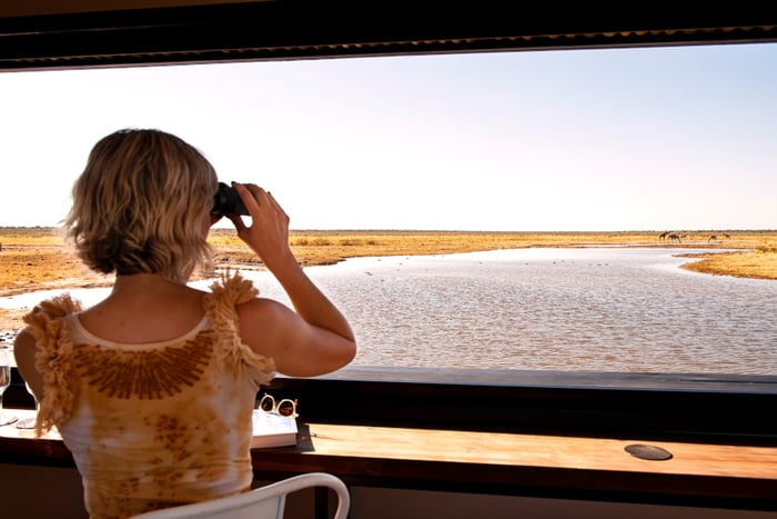 The bar is in actual fact the newly-built hide situated on a private waterhole exclusively reserved for Etosha King Nehale guests. With large glass windows that can slide open, it brings guests face to face with the majestic creatures that roam the park freely. Avid photographers can rest assured that it’ll be a glare-free experience for immaculate wildlife shots. This is no National Geographic through your TV screen – this is real.