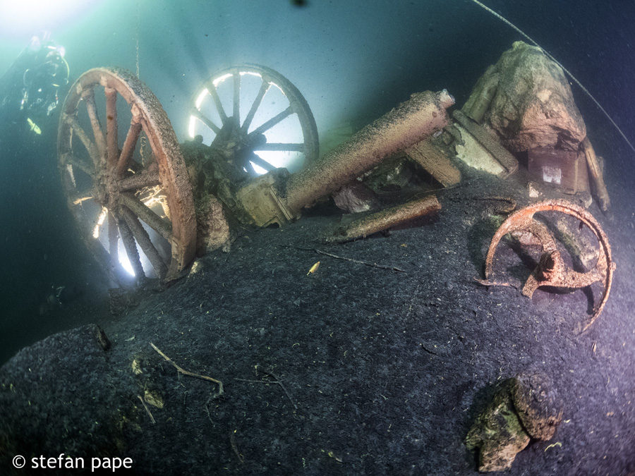 A sign board at Lake Otjikoto indicating which weapons are in the underwater museum...