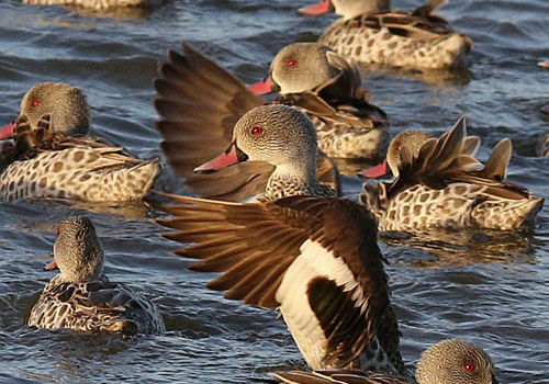 Introduction: Cape teals (Anas capensis) are found in salt pans, estuaries and coastal lagoons. Their habitat range extends to sewage ponds and farm dams, resulting in a range expansion. They usually congregate in pairs or small flocks and spend much of their time standing shallow shore waters when not feeding.