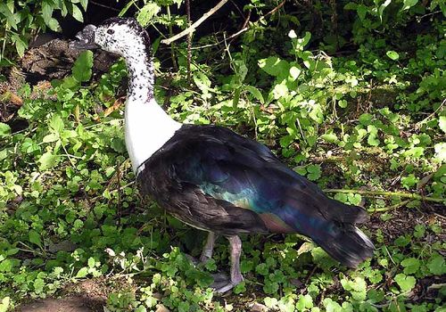 Description: Birds of this genus are fairly large, goose-like ducks. They are mainly white in colour with a glossy black upper. Males are much larger than females. Sarkidiornis is Greek for flesh and bird, referring to the fleshy comb of the female.