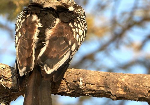 Introduction: A dry, open Acacia savannah and stands of low bushveld are the most common habitats for the yellow-billed hornbill (Tockus leucomelas). These birds are usually seen in pairs or small family groups, running around on the ground, hopping into low bushes and small trees with a raised tail. Roosting against tree trunks, early morning basking, preening and later afternoon dust-bathing are features of this hornbill.