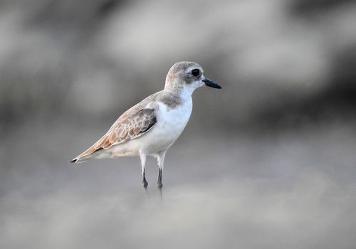 Description: Often confused with greater and lesser sand plovers who have black or grey-brown lores (the space between the bird's eye and bill) as opposed to white.