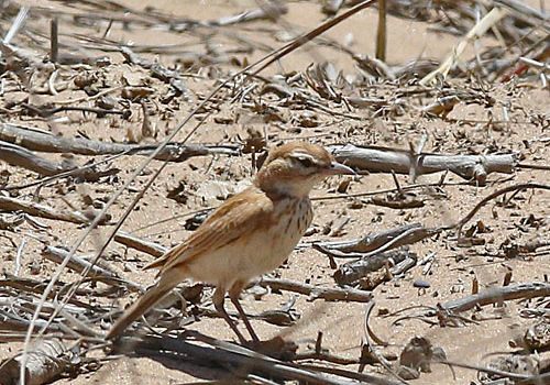 Description: Sandy rufous coloured upper parts and wing coverts. Plain face, brown tail and white underparts.