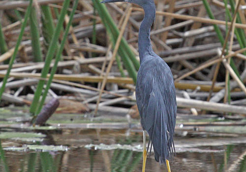 Introduction: Slaty egrets (Egretta vinaceigula) can be found in shallow margins of any wetland, solitary or in small groups of 4 to 10 birds. Perching in trees and roosting communally with other herons and starlings in reeds is common.