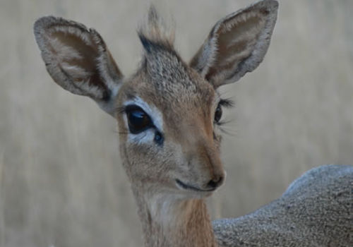 Introduction: The Damara dik-dik (Madoqua kirkii) is one of Africa's smallest antelopes and a protected species in Namibia. Although they are regularly seen alone, they mate for long periods, probably for life. They are very territorial and should competition be too stiff, will move on to a new territory. Among the characteristics of the Damara dik-dik, is their proboscis nose, that can be moved in any direction to scent for specific food sources. Their hooves have well-developed black rubbery pads that act as a shock absorbers when their feet strike the hard ground, a feature of the terrain they habit, mainly dense woodland and thick scrub.