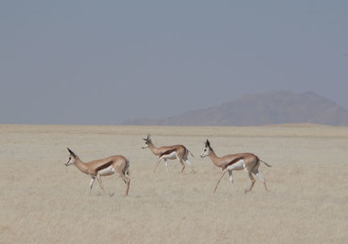 Distribution: The range of the springbok is amazing and they can be found in the Namib Desert, living on the sparse vegetation and in the farmlands around Windhoek. In central Namibia, vast herds often congregate and they are found in Etosha National Park, where they often mingle with herds of zebra and wildebeest, a predators delight!