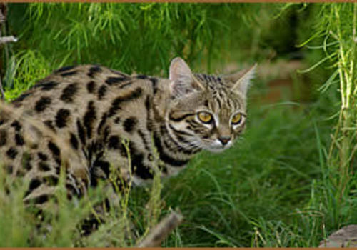 Introduction: The small spotted cat (Felis nigripes) is a relative of the African wild cat. They are usually associated with areas of tall grass or scrub bush and lie up in daylight hours in disused spring hare or aardvark holes in termite mounds. They are purely nocturnal and are a highly secretive species. They tend to be solitary creatures, but like all cats, there are two or more in attendance.
