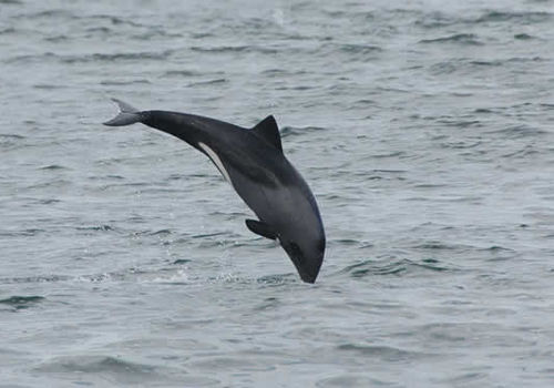 Colouring: The heaviside dolphin has a small, fat and dark upper body, with black and white side markings. There are white patches on the underside.