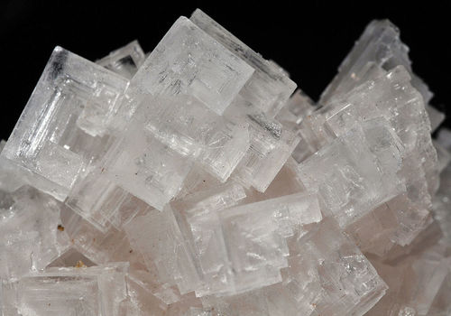 Introduction: Halite is more commonly known as rock salt. The Greek word halos means 'salt'. It is colourless to white and more often than not forms perfect cubic crystals in saline pans. Halite changes to a striking pink colour when algae is present in the water. Although halite is known to season food, its chemical uses include the manufacture of soda, paper, glass, caustic soda, detergents, soap and in food preservation. Salt is used in Namibia to surface some roads along the coast north of Swakopmund.