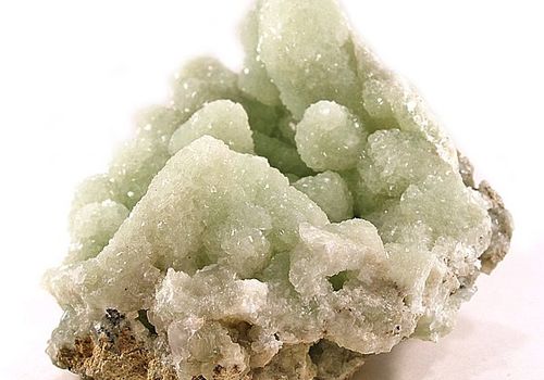 Introduction: Prehnite was the first mineral to be named after a person, notably Hendrik Prehn 1733-1785). It occurs in certain lavas, such as basalts as it is a low temperature mineral