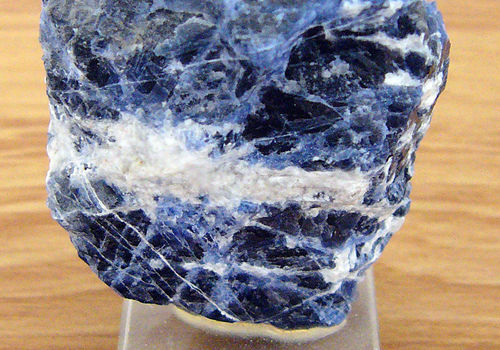 Introduction: Sodalite is so-called because of its sodium content and occurs in carbonatite and syenites. Namibia boasts the largest deposits of sodalite in southern Africa, best recognised by its very dark blue colour. White and yellow-green sodalite is also common. Used as an ornamental stone for tiles, carvings, jewellery, stonework and cladding.